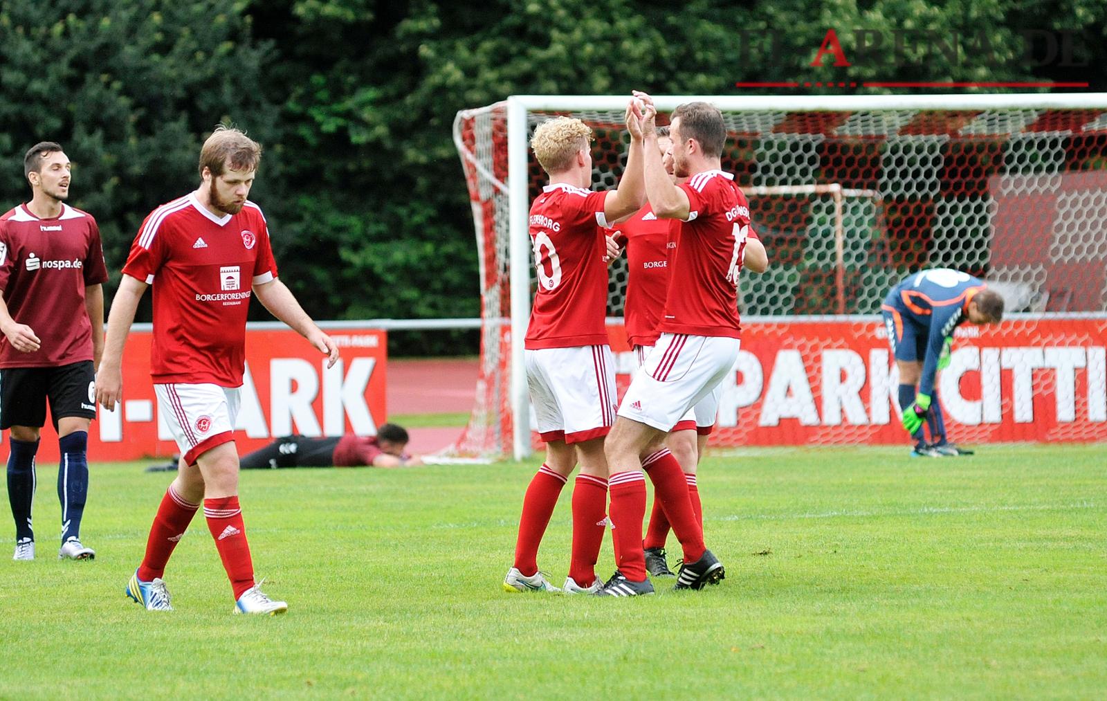 So schön feierlich wie beim 5:3 am 3. August beim ETSV Weiche II geht es seitdem nicht mehr zu bei den Fußballern von DGF Flensborg. Zuletzt überrollte sogar AufsteigerFC Wiesharde den SdU-Klub in der Verbandsliga. Schießt sich DGF nun am Mittwoch im Pokal den Frust von der Seele? (Archivfoto: Martina Metzger)