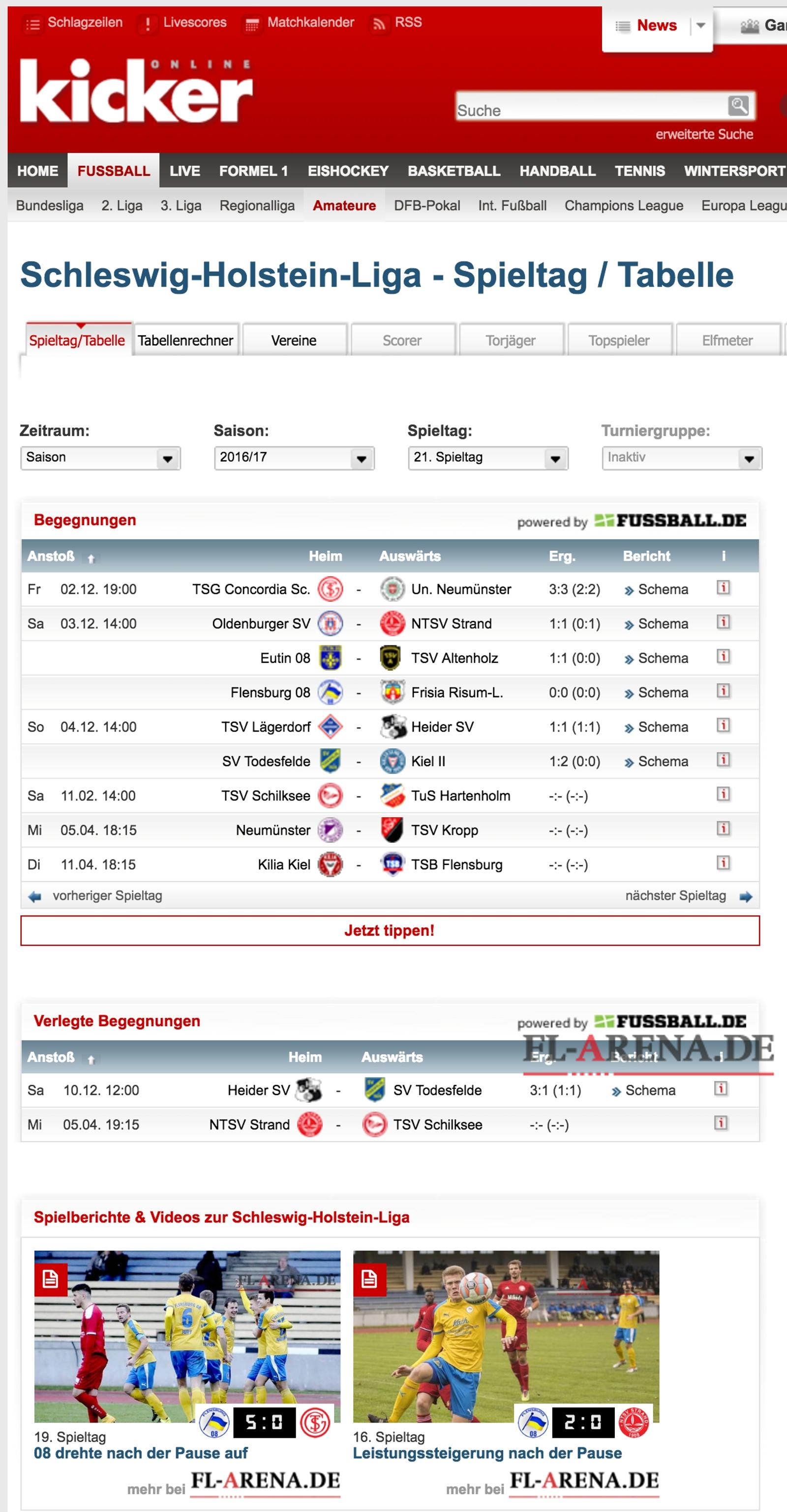 Kicker-User finden damit – zusätzlich zur umfangreichen Berichterstattung im Profibereich – qualifizierte Infos und News zu den Amateurligen und der Amateurfußball in und um Flensburg. Zudem werden diese Berichte so einem noch breiteren Feld an Interessierten näher gebracht als bisher. Auf unserem Portal laufen ab sofort auch Ergebnis- und Spieldaten wie z.B. die Torjägerliste der drei Profiligen ein.