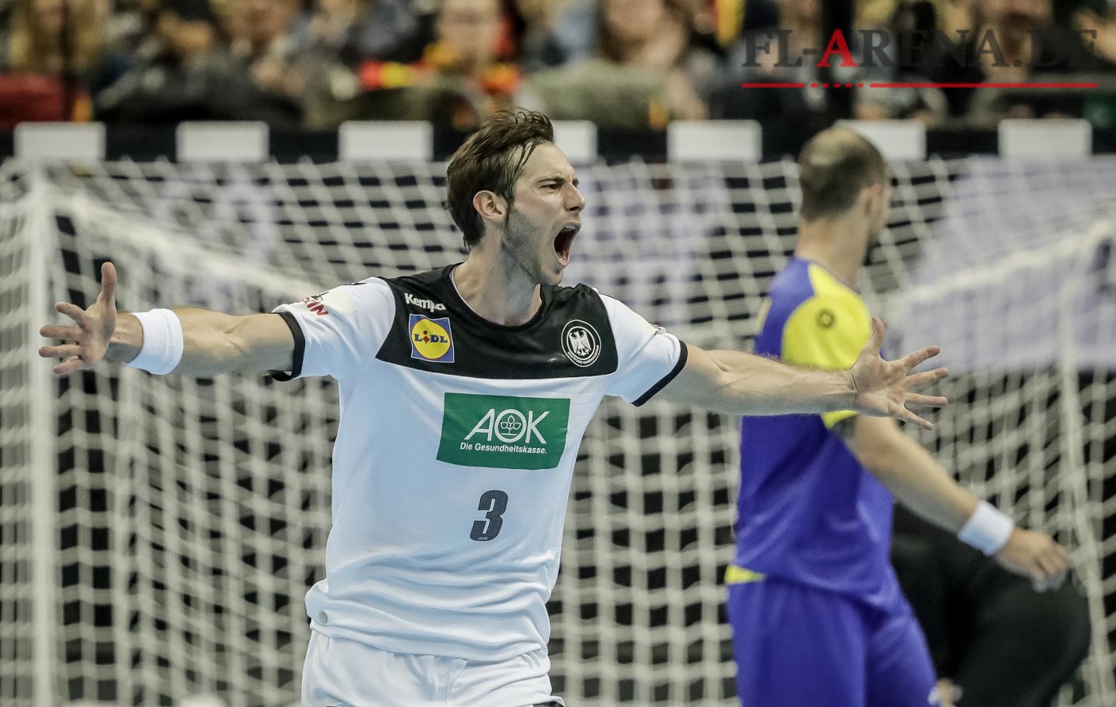 Uwe Gensheimer aus Deutschland jubelt nach dem Tor. Foto: Michael Kappeler/dpa