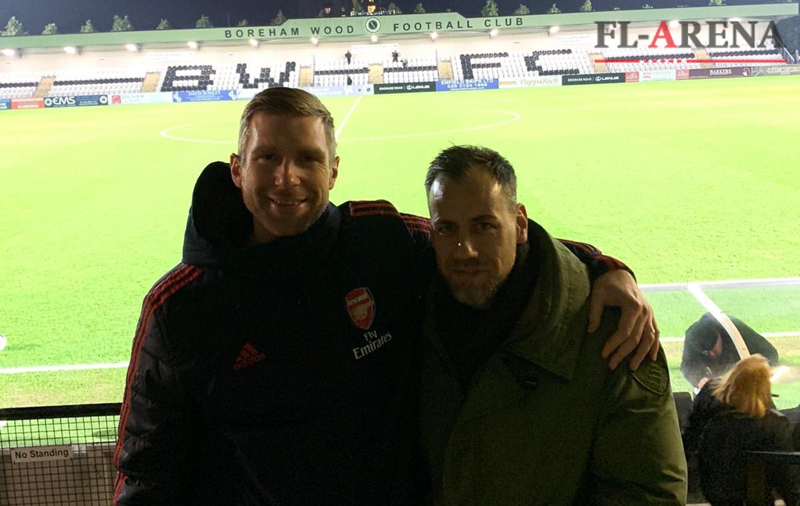 Maik Machulla von der SG Flensburg-Handewitt besuchte in London den FC Arsenal und tauschte sich mit Per Mertesacker aus.