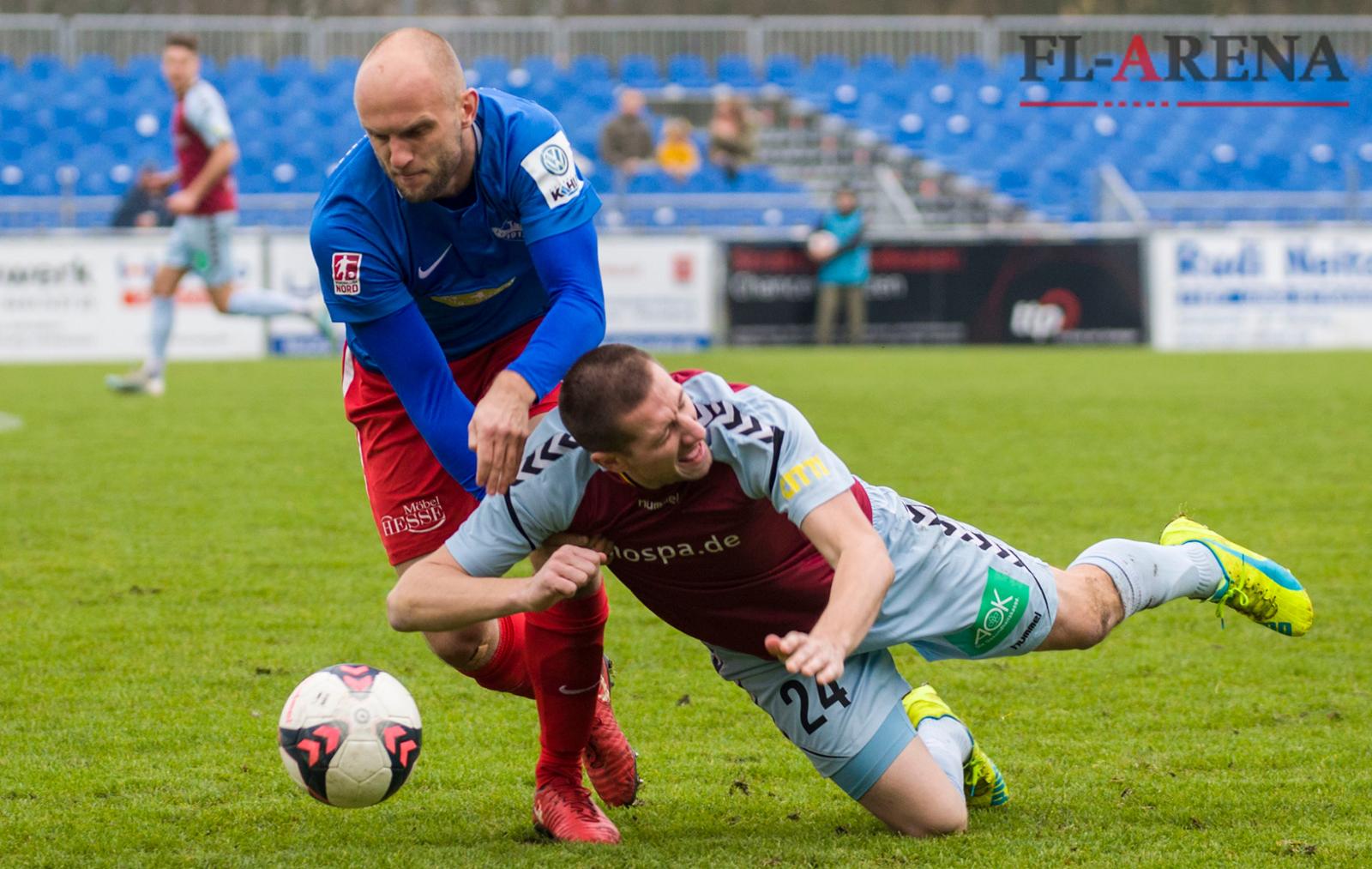 Tim Wulff (r.) und der SC Weiche Flensburg 08 haben gegen den TSV Havelse in der Regionalliga eine Bauchlandung hingelegt Fotos: Lars Salomonsen