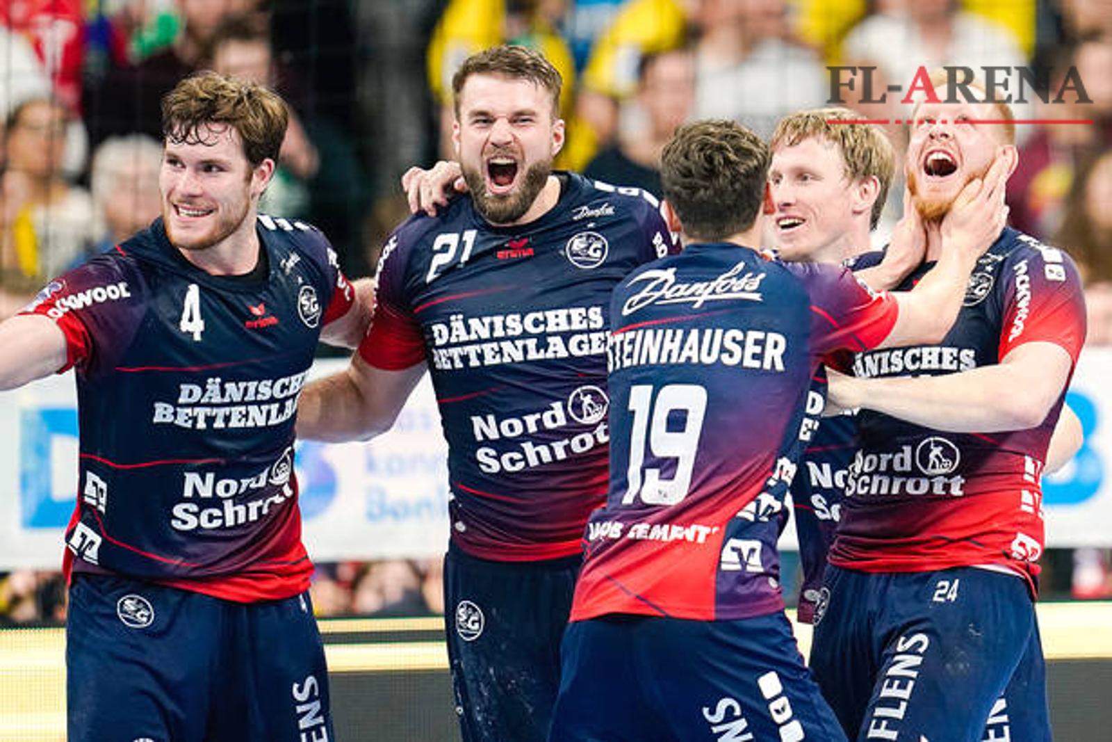 Die SG-Spieler um Jacob Heinl (2. v. l.) wollen auch gegen Minden wieder zwei Punkte holen. Fotos: Uwe Anspach/dpa