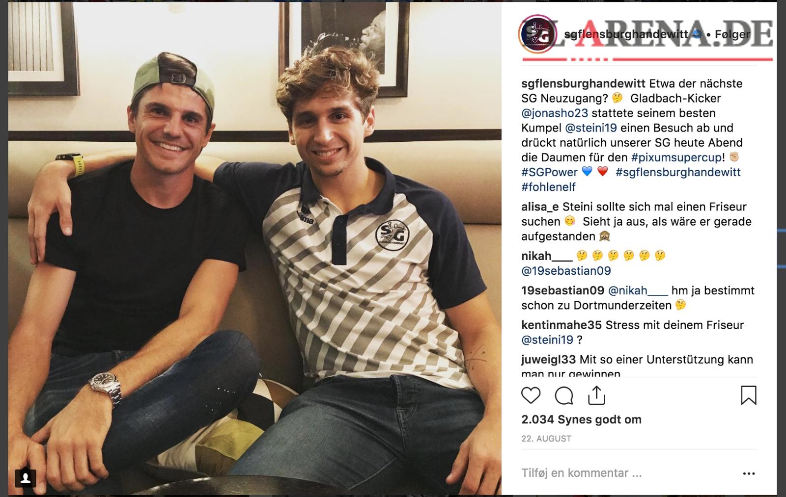 Trafen sich im Rahmen des Supcercups in Düsseldorf, Jonas Hofmann und Marius Steinhauser (r.). Foto: Instagram-Profil der SG Flensburg-Handewitt