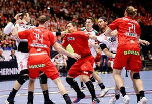 Værterne begyndte med tre af fire SG Flensburg-Handewitt-spillere. Mens Lasse Svan, Rasmus Lauge og efter René Toft Hansens skade også Simon Hald startede inde, sad Anders Zachariassen i begyndelsen på bænken. Det samme gjorde hans tidligere klubkammerat Henrik Toft Hansen (Paris), som erstattede sin skadede bror René i truppen.