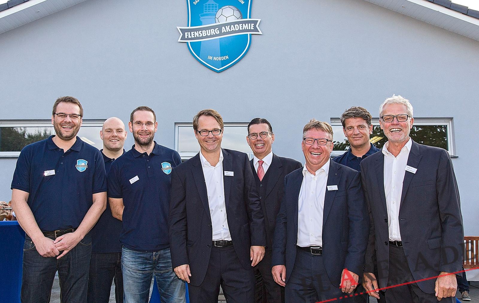 Flensburg. Am Donnerstag war ein großer Tag für den Förderverein der SG Flensburg-Handewitt »get in touch«. Die Bauherren Lewe T. Volquardsen und Hermann Dethleffsen, die sich gleichzeitig den Vorstand von get in touch mit Dr. Arfst Hansen und Hauke Präger teilen, präsentierten bei der offiziellen Eröffnung stolz die Flensburg Akademie.