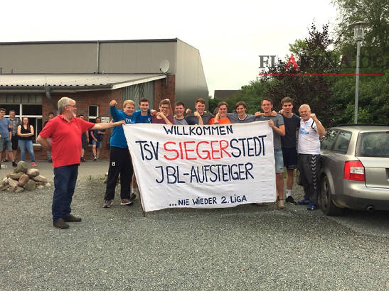 Fern der Heimat war der TSV-Nachwuchs zwar mit einem 31:23-Sieg gegen die TG Osthofen in die bundesweite Qualifikationsrunde gestartet. Gegen den VfL Günzburg setzte es im Anschluss allerdings eine schmerzhafte 27:30-Niederlage. Im finalen Aufeinandertreffen mit der JSG Werther/Borgholzhausen bewies der TSV Sieverstedt schließlich den größeren Siegeswillen und sicherte sich mit einem überzeugenden 22:16-Erfolg ebenso wie Günzburg die Fahrkarte für die höchste Jugend-Spielklasse Deutschlands. Bei Pizza, Pommes und Kaltgetränken klangen noch bis tief in die Nacht Aufstiegs-Gesänge aus dem Sportlerheim, wobei auch der Queen-Klassiker »We are the champions« nicht fehlen durfte.
