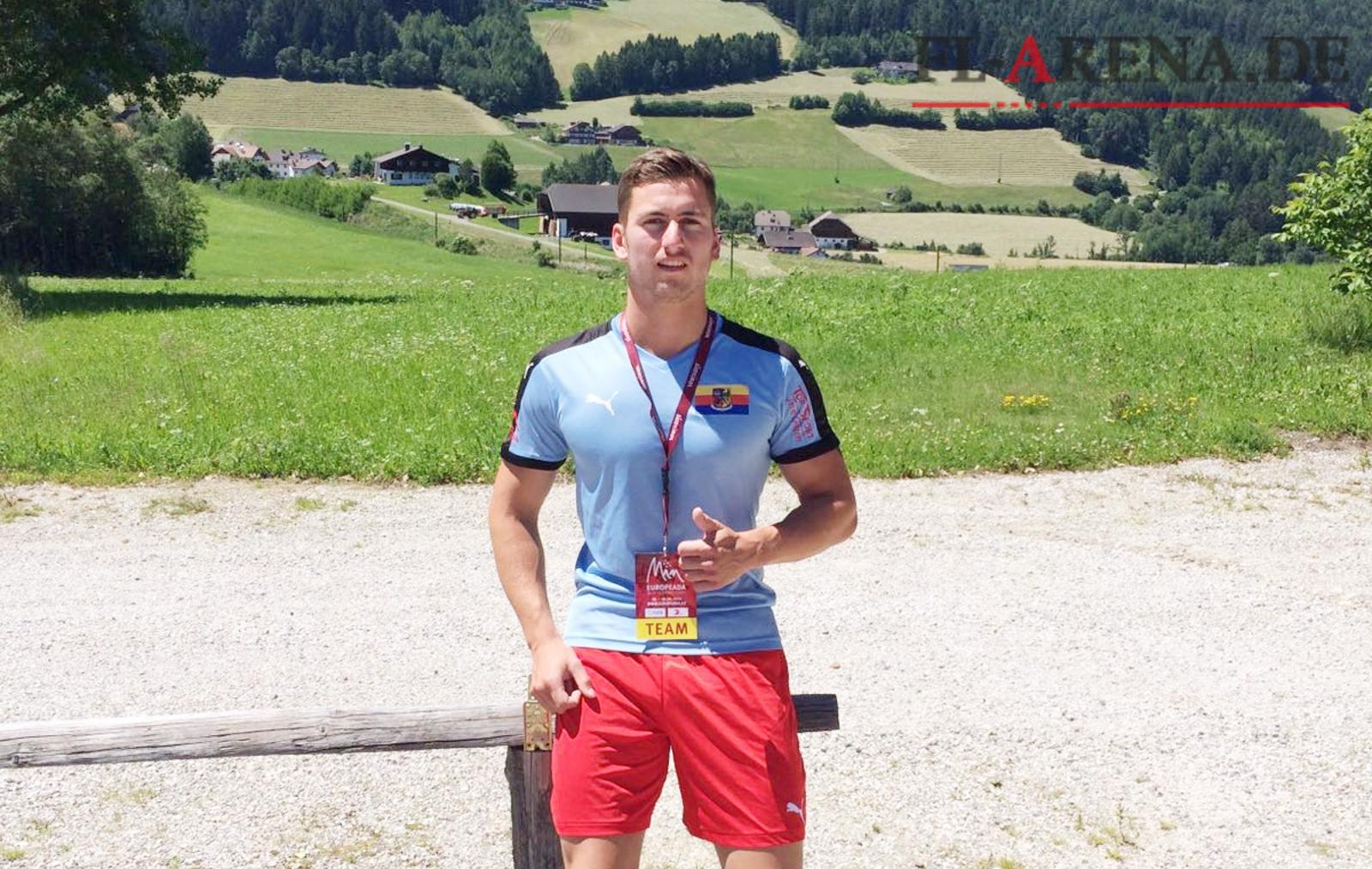 Jannik Drews in Südtirol. Der Stürmer vom ETSV Weiche Flensburg spielt momentan mit den Nordfriesen bei der Europeada 2016, der Fußball-EM für sprachliche Minderheiten.