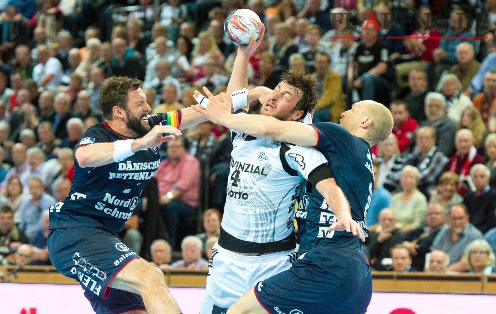 SG Flensburg-Handewitt-Kapitän Tobias Karlsson (l.) geht das frühe Karriereende vom ehemaligen Mannschaftskollegen und gutem Freund Johan Jakobsson (r.) sehr nahe. Archivfoto