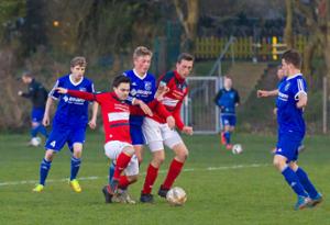 Flensburg. Am Dienstagabend mühten sich die favorisierten Fußball-Mannschaften vom TSB Flensburg und TSV Friedrichsberg ins Halbfinale des Kreispokals. Die Flensburger gewannen mit 2:1 (1:1) beim FC Wiesharde. Friedrichsberg siegte nach Elfmeterschießen mit 6:4 (1:2) gegen den TUS Collegia Jübek. In der Partie zwischen dem Schleswig-Holstein-Ligisten TSB Flensburg und dem FC Wiesharde, der momentan auf Platz 15 in der Verbandsliga Nord steht, hagelte es gleich neun gelbe Karten, jedoch nur drei Tore. Am Ende setzten sich die Favoriten aus Flensburg durch Tore von Eslin Kamuhanga (26.) und Timo Carstensen(80.) durch.