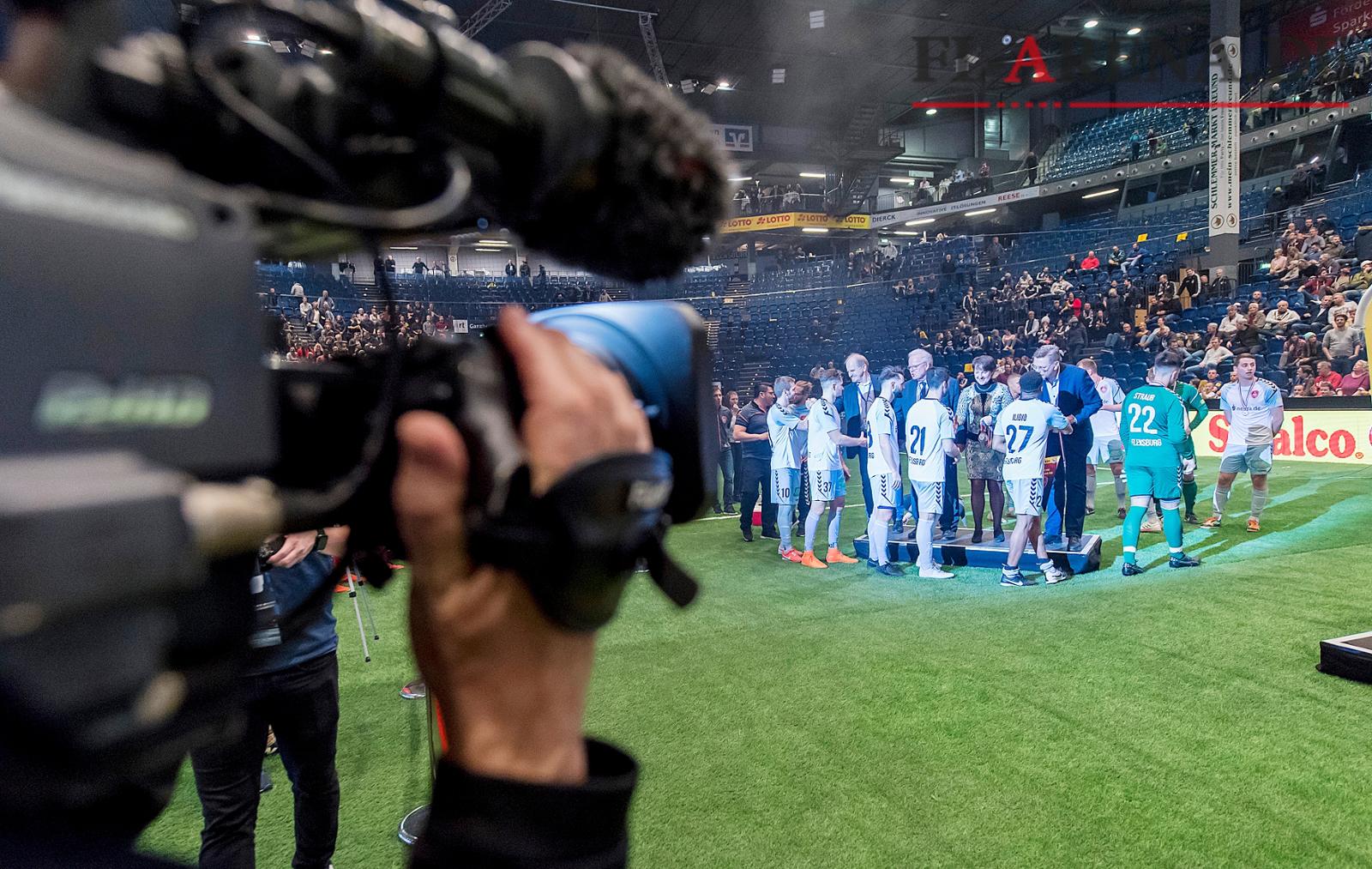 Kiel. Auf dem Kunstrasenfeld im Kieler Handballtempel blieb das Flensburger Feuerwerk in diesem Jahr leider aus. Hatten sich im Vorjahr im Finale noch der Regionalligist und Seriensieger SC Weiche Flensburg 08 mit dem Oberligisten TSB Flensburg duelliert, ging vor 8219 Zuschauern die Hallenkrone Schleswig-Holsteins 2019 auf die Reise in den Süden zum NTSV Strand 08.