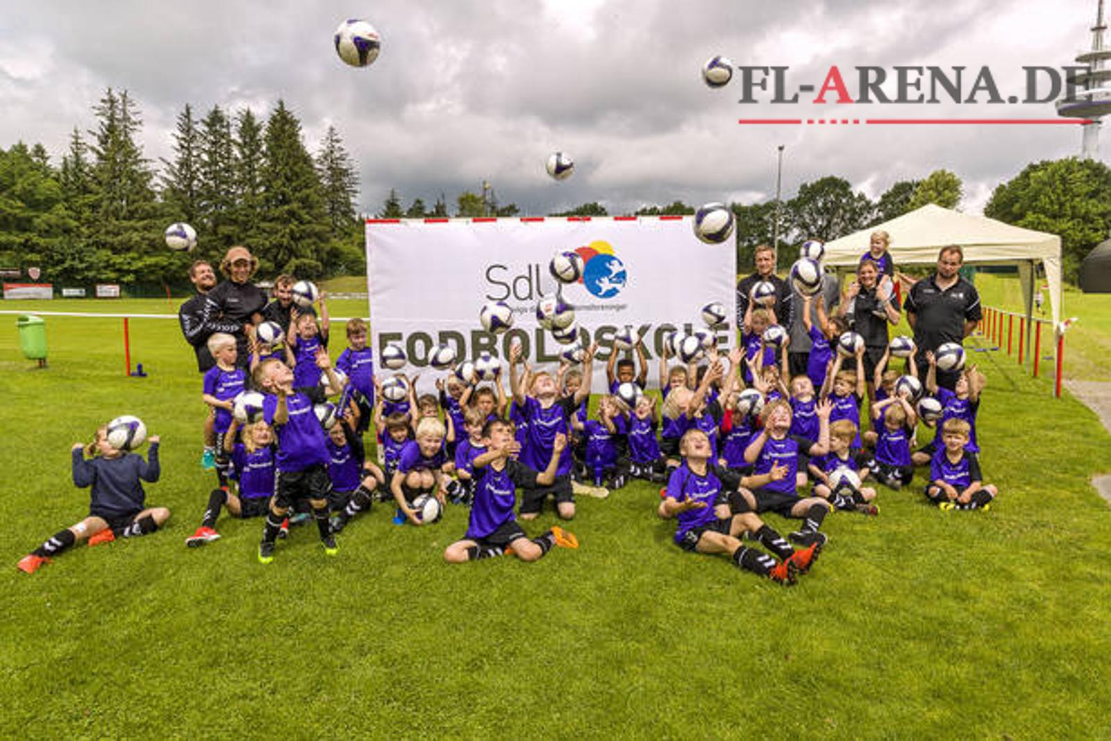 Slesvig. Lørdag kl. 10 tog SdUs fodboldskole-team imod 46 spændte børn mellem fem og syv år. To dage fra kl. 10 til 16 fik de unge deltagere lov til at give den gas på og uden for banen. Den første time lørdag gik med uddeling af tøj og at lære hinanden at kende. En af deltagerne var Henrik Vistrup fra Lyksborg, som tog til Slesvig sammen med syv venner.