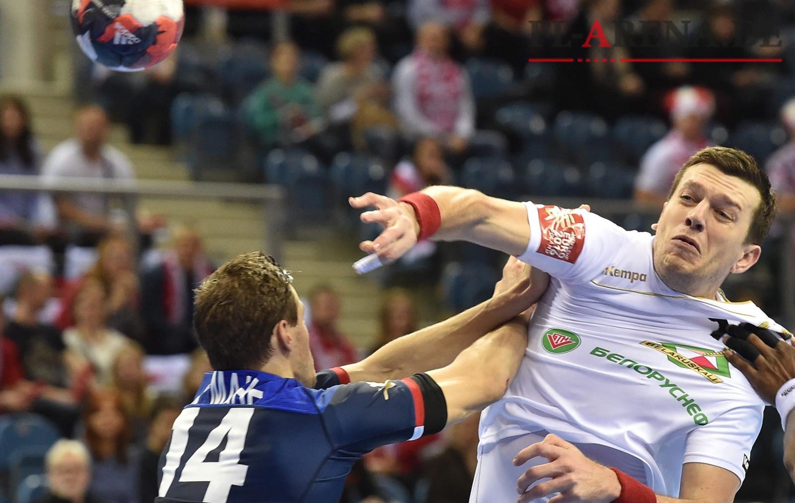 Frankreich spielt ohne Flensburgs Kentin Mahé (li.) gegen Kroatien. Mahé hatte sich im Spiel gegen Weißrussland (auf dem Foto eine Szene gegen Siarhei Rutenka) verletzt. (Archivfoto: Jacek Bednarczyk, dpa)