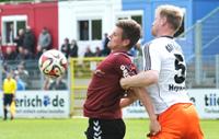 Kevin Schulz (li., hier bei der 1:2-Niederlage am Wochenende im Zweikampfduell mit Stefan Heyken vom BSV Rehden) gastiert mit seinem ETSV Weiche Flensburg am Freitag im letzten Regionalliga-Spiel beim FC St. Pauli II. (Foto: Martina Metzger)