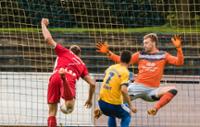 Torhüter Dennis Emken und Sebastian Kiesbye (in blau-gelb) hatten mit 08 gegen Eichede das Nachsehen. (Foto: Lars Salomonsen)