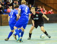 Der FC Wiesharde (hellblaue Trikots, hier beim Flensborg Avis Cup am vergangenen Dienstag) ist am Sonnabendabend Gastgeber eines Hallenturniers. (Foto: Tim Riediger)