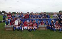 So sehen Sieger aus. Die Fußballer vom TSB Flensburg im feuchtfröhlichen Siegesrausch. (Foto: Jacqueline Röder/TSB Flensburg)