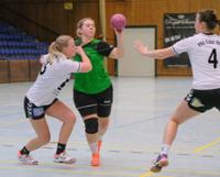 Anna Lena Sahliger von IF Stjernen versuchte die Lücke zwischen den beiden Wellingdorfern Lina Hansen (links) und Martha Rossman zu finden. (Foto: Sven Geissler)