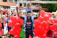 Ausgelassene Freude bei Till Schramm und Sohn Theo nach dem Sieg beim Ostseeman 2019. Fotos: Martin Ziemer