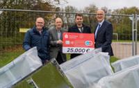 Hans Peter Carstensen (SC-Projektverantwortlicher), Bernd Bleitzhofer(SC-Präsident), Christian Jürgensen (Kapitän Regionalligafußballer) und Thomas Menke (Nospa-Vorsitzender) freuen sich über den nächsten Schritt in der Infrastruktur des Manfred-Werner-Stadions. Fotos: Martin Ziemer