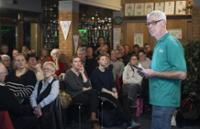 IF Stjernen Flensborgs formand Ronald Weigelt (t.h.) kunne se ud over et stuvende fyldt lokale til klubbens årlige generalforsamling i Engelsby-Centret. Formanden har bebudet sin afsked fra posten til næste års generalforsamling. Fotos: Kira Kutscher