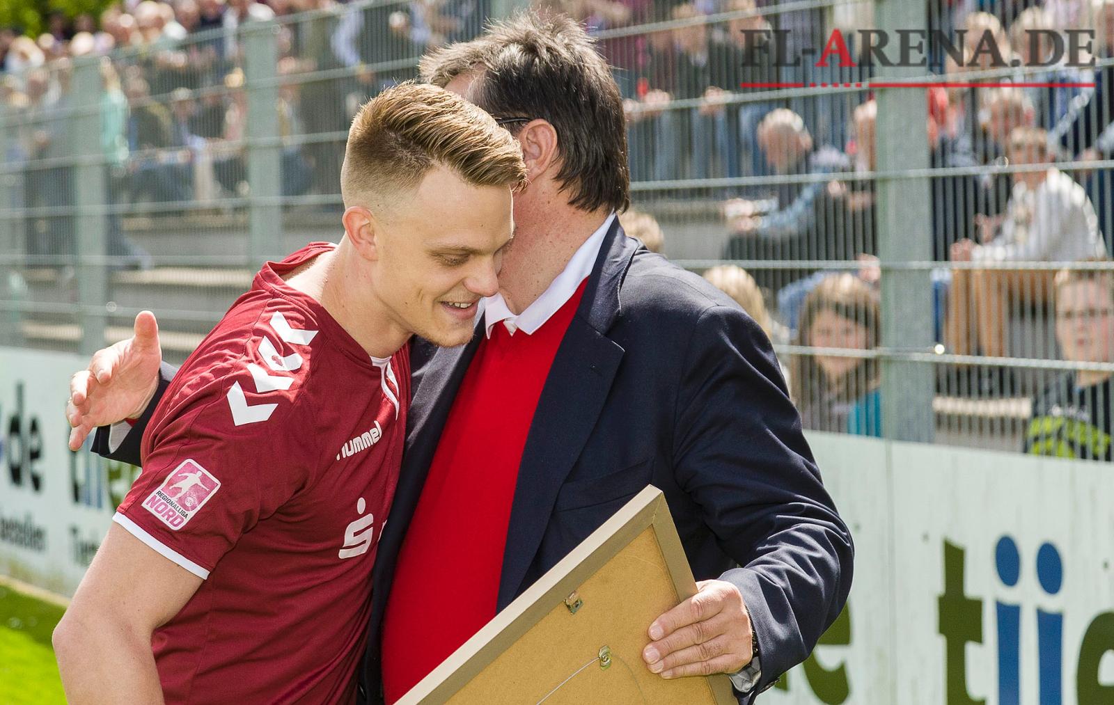 Danke, Rene! harald Uhr und Rene Guder, der zu Holstein Kiel zurückkehrt. »Auch dort werde ich angreifen«, sagte Guder Flensborg Avis nach dem Schlusspfiff. (Foto: Lars Salomonsen)