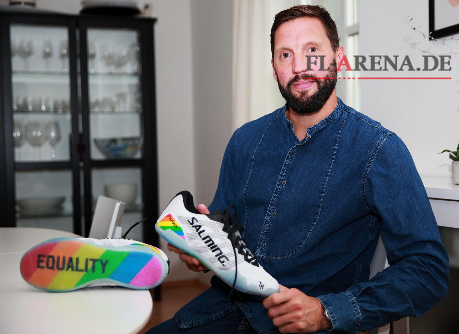 Mit seinem neuen Schuh will Tobias Karlsson ein Zeichen für Gleichheit und Vielfalt im Handball und der Gesellschaft setzen. Foto: Salming/Ingrid Anderson-Jensen