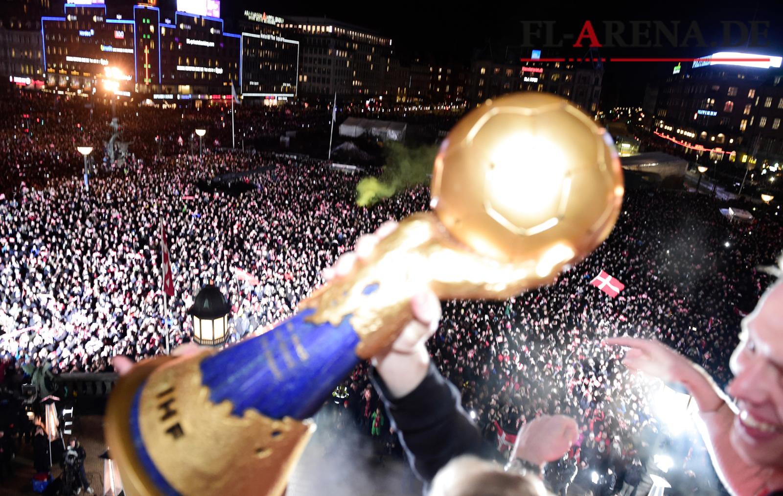 Det var en fyldt Rådhusplads i København da håndboldherrrene viste VM-trofæet frem. Foto: Mads Claus Rasmussen, Ritzau Scanpix