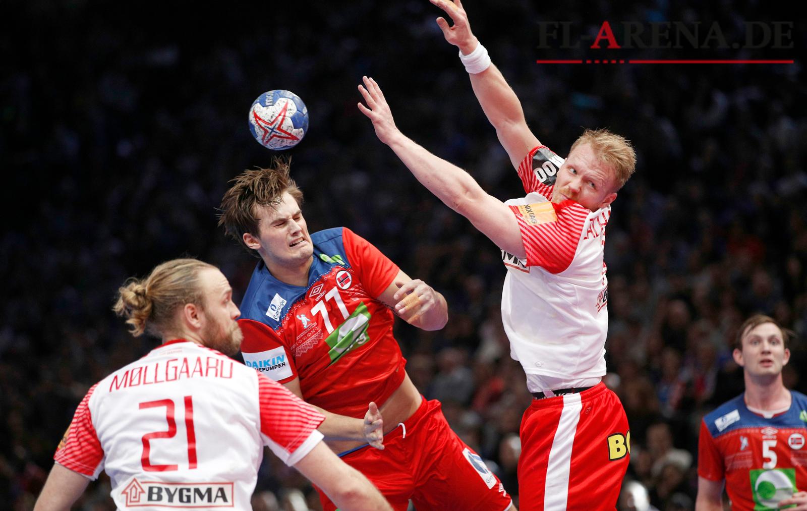 Magnus Rød (Nr. 77), hier eine Szene aus einem EM-Testspiel, hat mit Norwegen den ersten Sieg geholt. (Archivfoto)