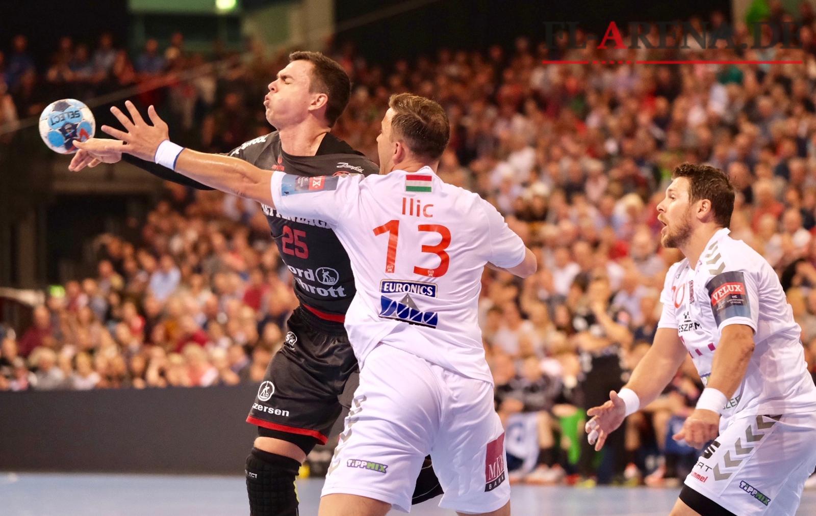 Her kommer de tyske mestre under et tryk, som kommer til at overstige den ellers imponerende kulisse i Flens-Arena. Dagene, hvor Champions League var noget andenrangshalløj, er for længst forbi. En kvartfinale fik følelserne frem, og Rasmus Lauge var hurtig til at sende sig første signal til sit publikum. Han skruede lige op for tempoet, dansede forbi to tunge ungarer, scorede til 3-0 og trak samtidig en udvisning til Blaz Blagotinsek. Jubelbrølet ud mod nordtribunen understregede blot, at motivationen bestemt ikke fejlede noget, selvom den kommende arbejdsgiver var modstanderen.