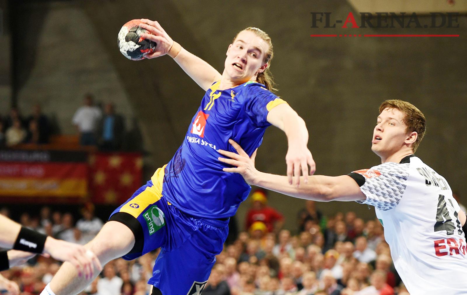 Der Schwede Lukas Nilsson (am Ball, hier gegen Deutschlands Christian Dissinger bei der EM in Polen) wechselt zum THW Kiel. (Foto: Janek Skarzynski, dpa)