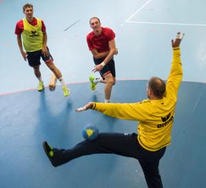 Von denen waren mit Magnus Rød, Simon Jeppsson und Marius Steinhauser auch fast alle dabei. Lediglich Last-Minute-Neuzugang Rasmus Lind hat noch ein paar Tage Sonderurlaub erhalten. »Rasmus hatte schon lange seinen Familienurlaub geplant. Und da er uns in einer schwierigen Situation hilft, habe ich ihm den nicht gestrichen. Er wird zum Trainingslager in Schweden nachkommen«, so Machulla, der auch Andreas Meyer Ejlseren und Johannes Krüger aus der Zweiten Mittwoch mit nach Schweden nimmt. Ejlersen wird Lind bis zu seiner Ankunft vertreten und Krüger sogar die gesamte Vorbereitung mitmachen. »Er ist eine Alternative für Linksaußen, da Kentin Mahé überall spielen kann und wir dank der neuen 16-Mann-Regelung jetzt noch mehr Möglichkeiten haben«, freut sich Machulla, der noch ein paar Neuerungen parat hatte. So machte er das Team gleich zu Beginn der Vorbereitung mit Michael Döring bekannt. Döring, bislang hauptsächlich für die Akademie tätig, ist Athletiktrainer und wird das Trainerteam als solcher unterstützen. Auch er reist mit ins sieben-tägige Trainingscamp.