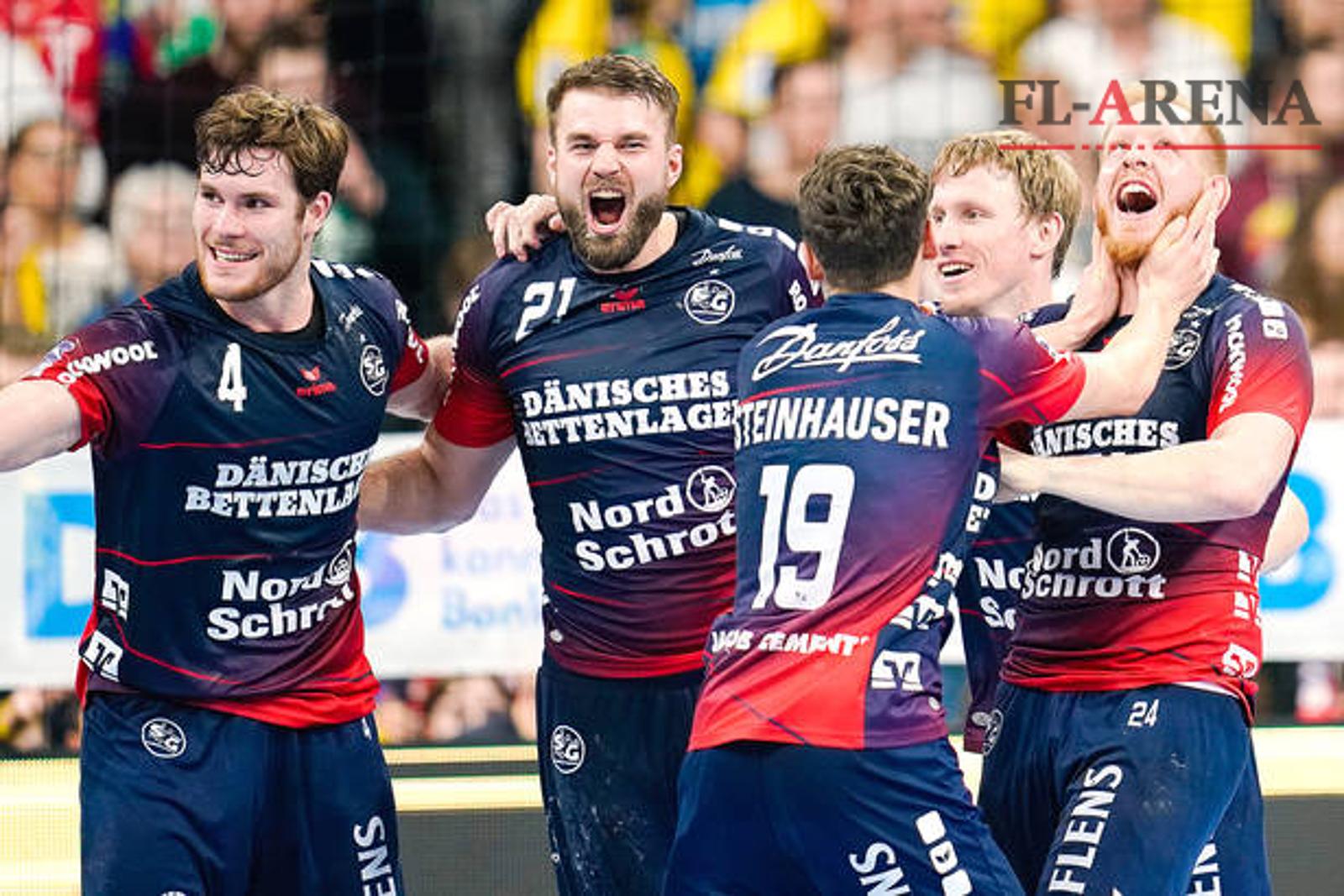 Jacob Heinl (nr. 21) bleibt der SG mindestens bis 2021 erhalten und will mit den Teamkollegen am Mittwoch gegen Celje wieder jubeln. Foto: Uwe Anspach/dpa