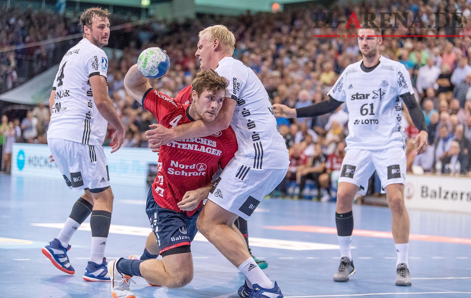 Kreis: Patrick Wiencek (THW Kiel), Hendrik Pekeler (THW Kiel), Jannik Kohlbacher (Rhein-Neckar Löwen)