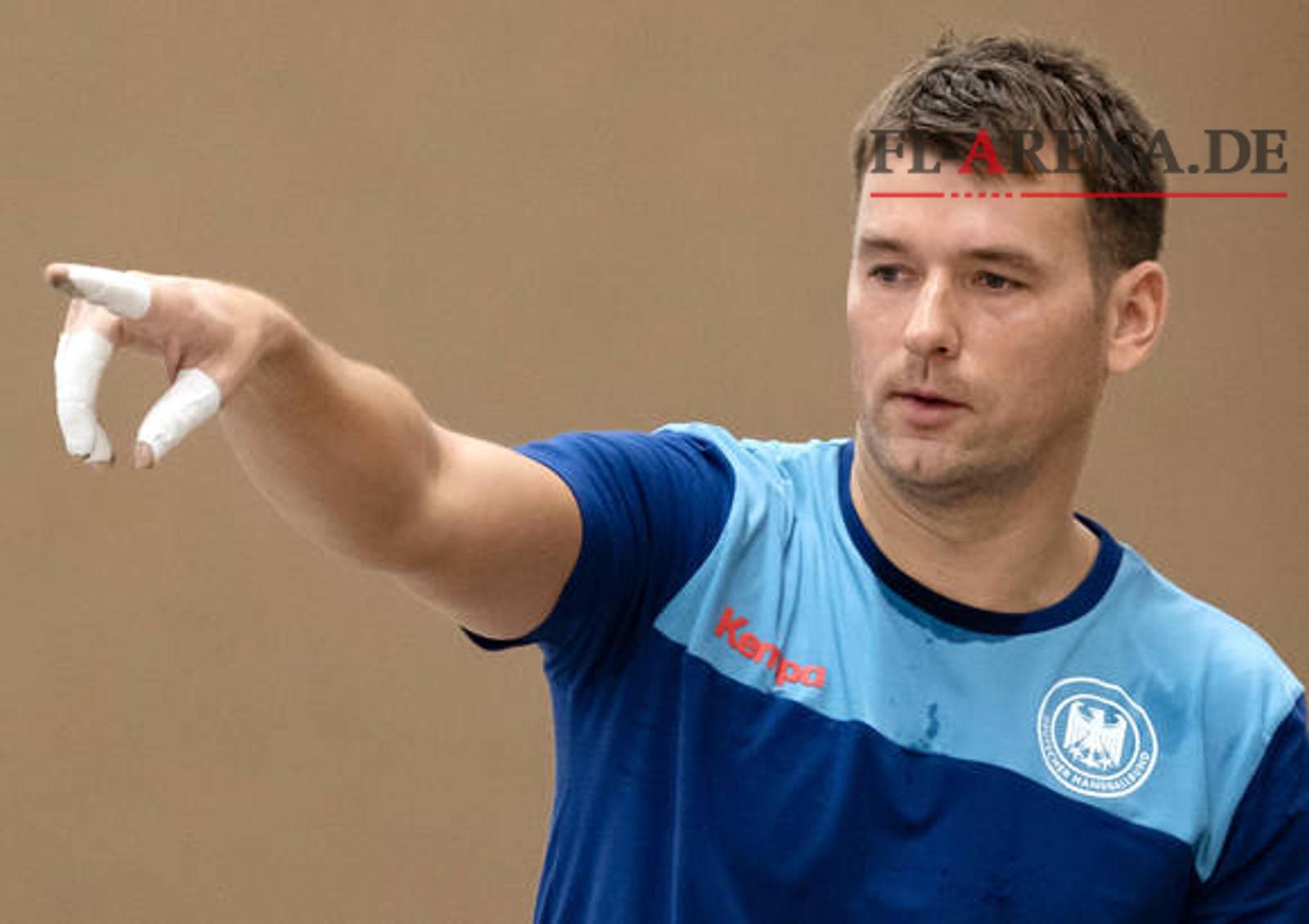 Der deutsche Handball-Bundestrainer Christian Prokop leitet das Training der deutschen Nationalmannschaft vor der anstehenden Weltmeisterschaft in Deutschland und Dänemark. Foto: Peter Steffen, dpa