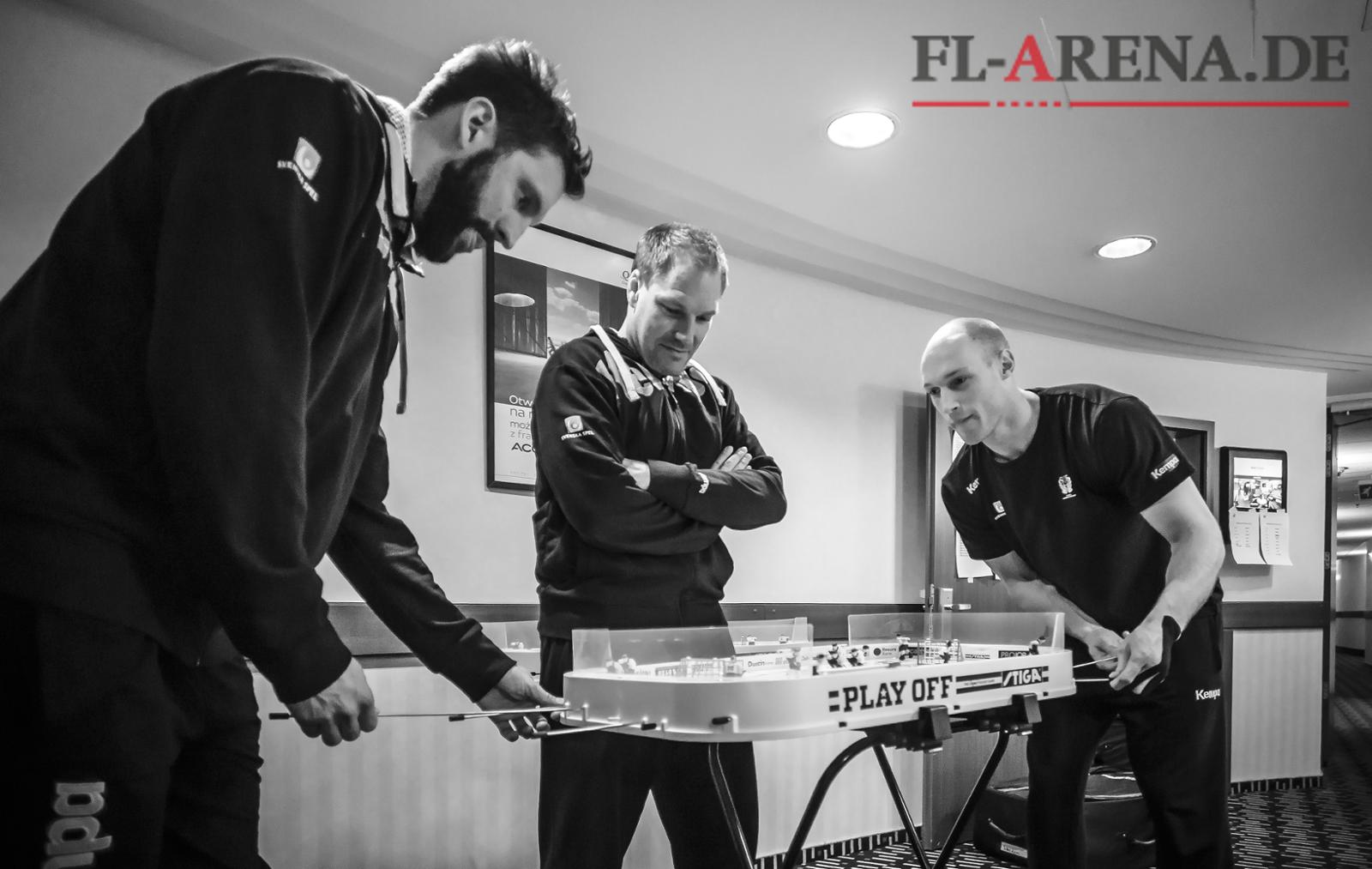 Tobias Karlsson, Mattias Andersson und Johan Jakobsson (von links) vertreiben sich die Zeit zwischen den EM-Spielen. (Foto: Sascha Klahn)