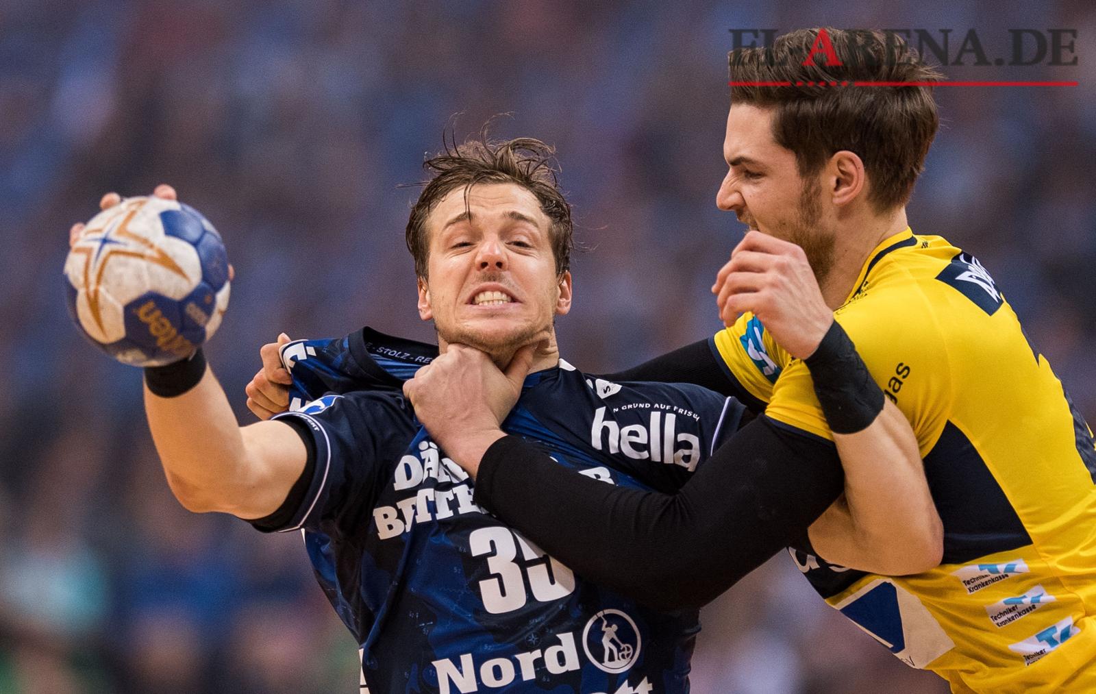 Die SG steckte in einer hochdramatischen Schlussphase jedoch nicht auf. Nach einer Roten Karte für Hendrik Pekeler (RN Löwen) rettete Anders Eggert seine SG mit einem Siebenmeter-Heber drei Sekunden vor Schluss in die Verlängerung (26:26).