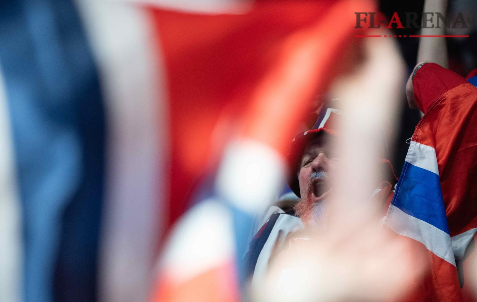Während Boesen und die anderen Verantwortlichen auf der Bank schwarze Hosen, ein weißes Hemd und ein blaues Sakko trugen, hatten die etwa 30 Fans ihrer Mannschaft bereits nach fünf Minuten ihre T-Shirts abgelegt. Sie feuerten ihr Team Oberkörper frei und lautstark an. Der Rest des mit 8232 Besuchern bestens gefülltem Spektrum in Trondheim war in rot, blau und weiß getränkt - die Stimmung war bestens. Vor allem nach der ersten Parade von Bergerud und dem anschließenden 2:2 von Rød (6.).
