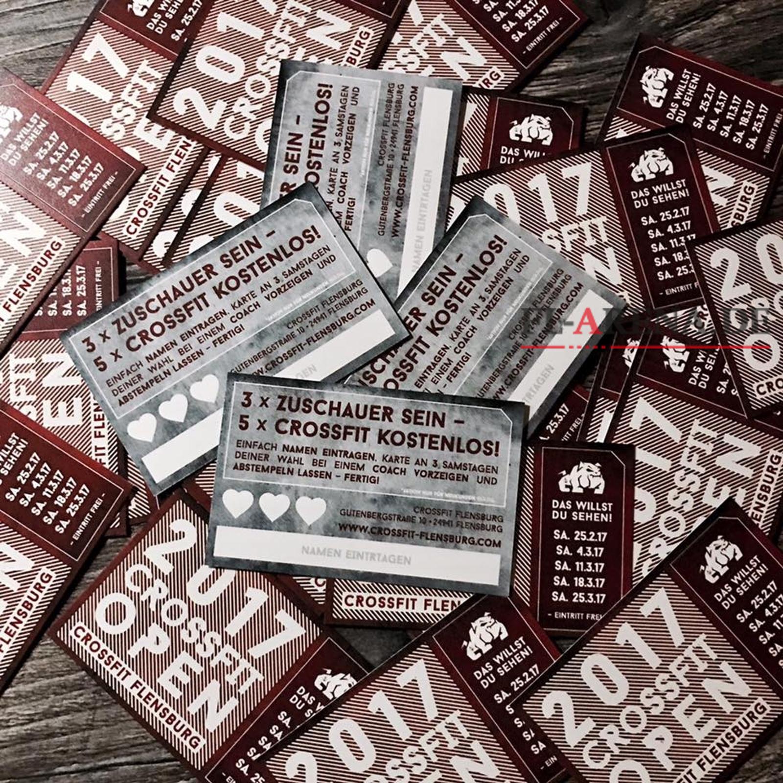 In Kooperation mit Crossfit Flensburg verteilen wir ein kleines Bonbon in Form einer ganz besonderen Karte (siehe Foto). Holt Euch das gute Stück, schaut drei Mal bei den Open zu und trainiert fünf Mal kostenlos in Flensburgs einziger Crossfit-Box (Gutenbergstraße 10). So ist der Deal, wenn Ihr Euch die Karte direkt in der Box abholt (so lange der Vorrat reicht).