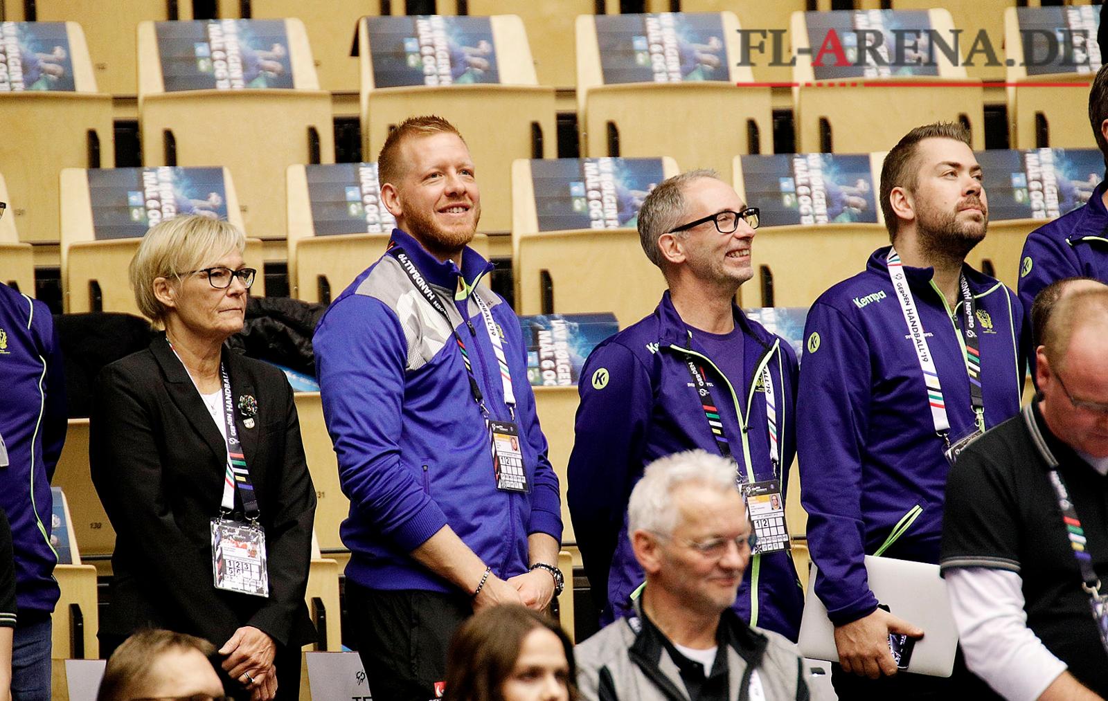 Der schwedische Spielmacher der SG Flensburg-Handewitt Jim Gottfridsson (2 v.l.) war in der Hauptrunde der Weltmeisterschaft aufgrund einer Verletzung zum Zuschauen verdonnert. Archivfoto: Lars Salomonsen