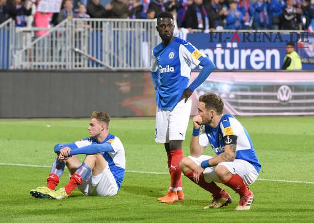 Traurige Kieler: (von links) Marvin Ducksch, Kingsley Schindler und Rafael Czichos. Foto: Daniel Bockwoldt/dpa