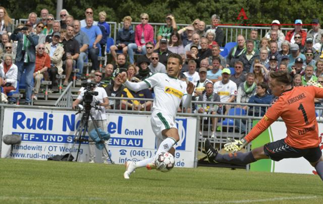 Vor allem im ersten Durchgang war in Sachen Tempo der erwartete Klassenunterschied deutlich zu sehen. Immer wieder wurde die SC-Abwehr überlaufen und ausgespielt. Im zweiten Spielabschnitt verlief das Spiel optisch etwas ausgeglichener. Der SC hatte nun etwas mehr Spielanteile nach vorne, ohne sich jedoch zwingend durchzusetzen. Bei einem der Angriffe blieben die Hausherren hängen und kassierten noch das 0:4 durch Raffael (70.) nach einem Konter. Dies war gleichzeitig der Endstand. Während sich Borussia-Coach Dieter Hecking für die guten Bedingungen beim SC bedankte und mit dem Spiel seines Teams zufrieden war, »wir waren wieder einen Schritt weiter als noch in Lübeck« (Ton Hecking), zeigte sich Daniel Jurgeleit unzufrieden. Genau wie sein Spielführer monierte er die frühen Gegentore. »Mit dem Ergebnis bin ich und sind die Jungs daher nicht zufrieden. Wenn man so früh in Rückstand gerät und dann später noch ein weiteres Gegentor kassiert, ist es gegen einen Bundesligisten natürlich schwer. Sicherlich hatten wir eine harte Woche hinter uns, aber wir können das besser«, so der Ex-Profi, der selber 29 Mal in der Bundesliga aufgelaufen ist, darunter einmal gegen Mönchengladbach (0:0 am 15. September 1989). Jürgensen sagte abschließend: »Es ist etwas schwer zu sagen, wo wir nach diesen Spielen gegen Profi-Teams und drei Wochen Vorbereitung stehen. Wir müssen viel mitnehmen und aus den Partien lernen und ich denke, wenn wir etwas eingespielter sind, kommt auch unsere Kompaktheit zurück.« Vielleicht ja genau richtig am 19. August (15.30 Uhr), wenn es in der 1. Runde im DFB-Pokal gegen den Zweitligisten VfL Bochum geht. Dann kann der SC zeigen, was er aus der Vorbereitung gelernt hat, es besser machen und vielleicht für eine Überraschung sorgen.