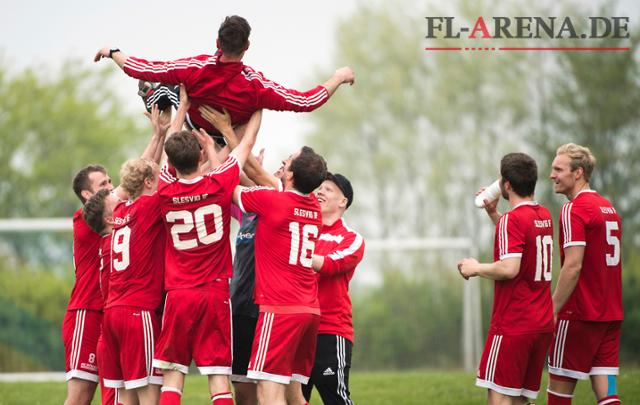 Die Elf legte auf fremdem Platz los wie die Feuerwehr, brachte die gedachte Anzeigetafel in Windeseile zum Glühen: Lukas Linhardt (8.), Sascha Petersen (11.) und Nico Kraushaar (23.) schossen die schnelle 3:0-Führung heraus. »Wir haben in den ersten 25 Minuten hervorragenden Fußball gespielt«, so Petersen, der kurz darauf Zeuge eines fragwürdigen Elfmeters gegen sein Team wurde. Patrick Seel war es egal, er verwandelte zum 1:3 (25.). Nach gut einer Stunde gelang gar der Anschlusstreffer durch Lasse Saak (61.), doch eine wirkliche Aufholjagd blieb aus. Vielmehr hätte der SIF eine der vielen Konterchancen nutzen müssen. So blieb es beim knappen, aber umso mehr umjubelten Sieg. »Das gibt es nicht alle Tage«, so Petersen über den dritten Aufstieg mit der Mannschaft, die er einst in der heutigen Kreisklasse B aufgebaut hatte. Das offizielle Abschlussfest steigt nach dem letzten Spieltag gegen DGF II, das den Schleswigern entgegenkommt und das Heimrecht tauscht.