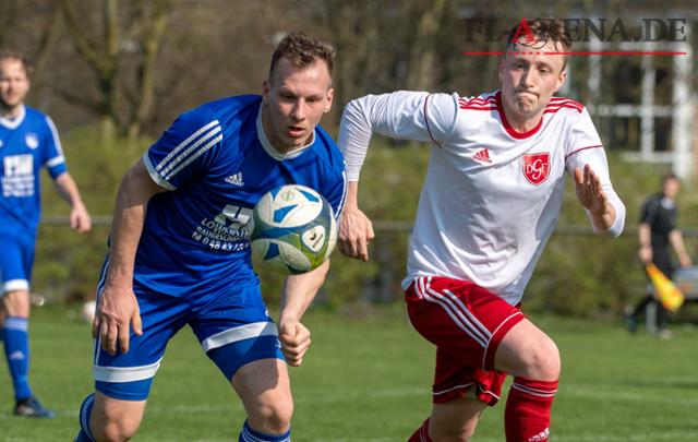 Brian Nielsen (rechts) erzielte das 2:1 beim Sieg von DGF Flensborg bei der SG Oldenswort-Witzwort. Archivfoto: Tim Riediger