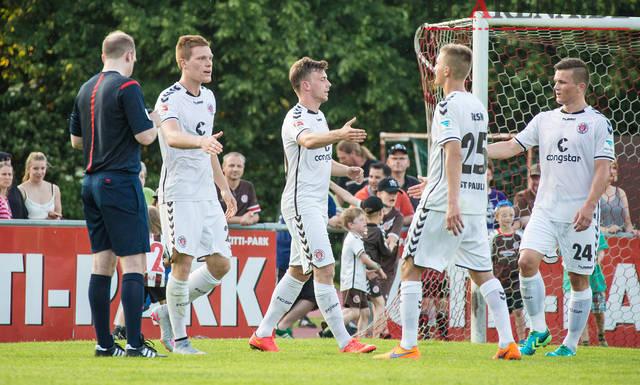 Im Sommer 2015 war der FC St. Pauli zuletzt zu Gast in Weiche. Damals noch bei den Gästen, SC-Stürmer Nico Empen (r.). Archivfoto