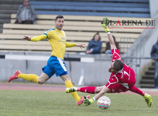 Sebastian Kiesbye brachte seine Blau-Gelben mit diesem 1:0-Führungstor sowie dem 2:0 kurz darauf auf die Siegerstraße. 20 Saisontore hat Kiesbye nun. (Foto: Tim Riediger)