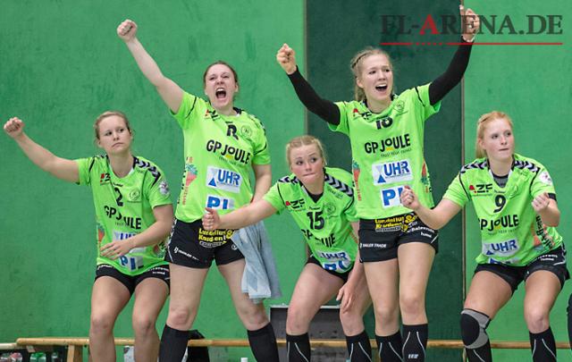 Die Handballerinnen des TSV Nord Harrislee wollen auch im letzten Heimspiel so jubeln. Archivfoto: Tim Riediger