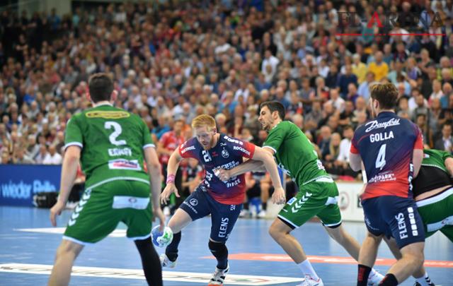 Wann Jim Gottfridsson (mit Ball) und Johannes Golla von der SG Flensburg-Handewitt in die kommende Saison starten können, wird im Juni entschieden. Archivfoto: Tim Riediger