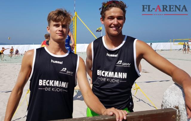 Am Ende reichte es bei der Deutschen U19-Beachvolleyballmeisterschaft in Laboe für Bo Hansen (l.) und Hennes Nissen zu Platz 13. Im kommenden Jahr will das Flensburger-Duo aber wieder voll angreifen. Foto: Seahawks