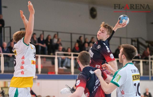 Marek Nissen (am Ball) und die A-Jugend der SG Flensburg-Handewitt war gegen den SC DHfK Leipzig bis zum Schluss gefordert. Foto: Sven Geißler