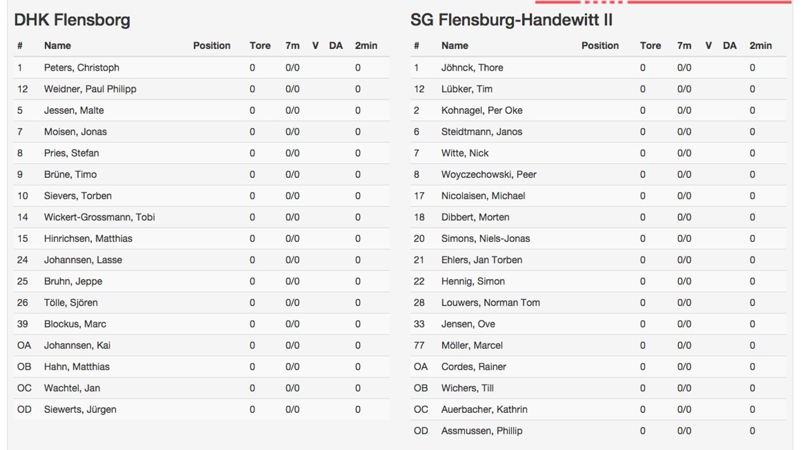 Die SG II spielt mit folgendem Team: Nach langer Verletzungspause ist Thore Jöhnck kurzfristig in den Kader zurückgekehrt und teilt sich den Posten im Tor mit Tim Lübker. Kerim Genähr aus der A-Jugend sitzt auf der Tribüne. Im Feld spielen die Gäste mit: Per Oke Kohnagel, Janos Steidtmann, Nick Witte, Peer Woyczechowski, Michael Nicolaisen, Morten Dibbert, Niels-Jonas Simons, Jan Torben Ehlers, Simon Hennig, Norman Louwers, Ove Jensen und Marcel Möller.